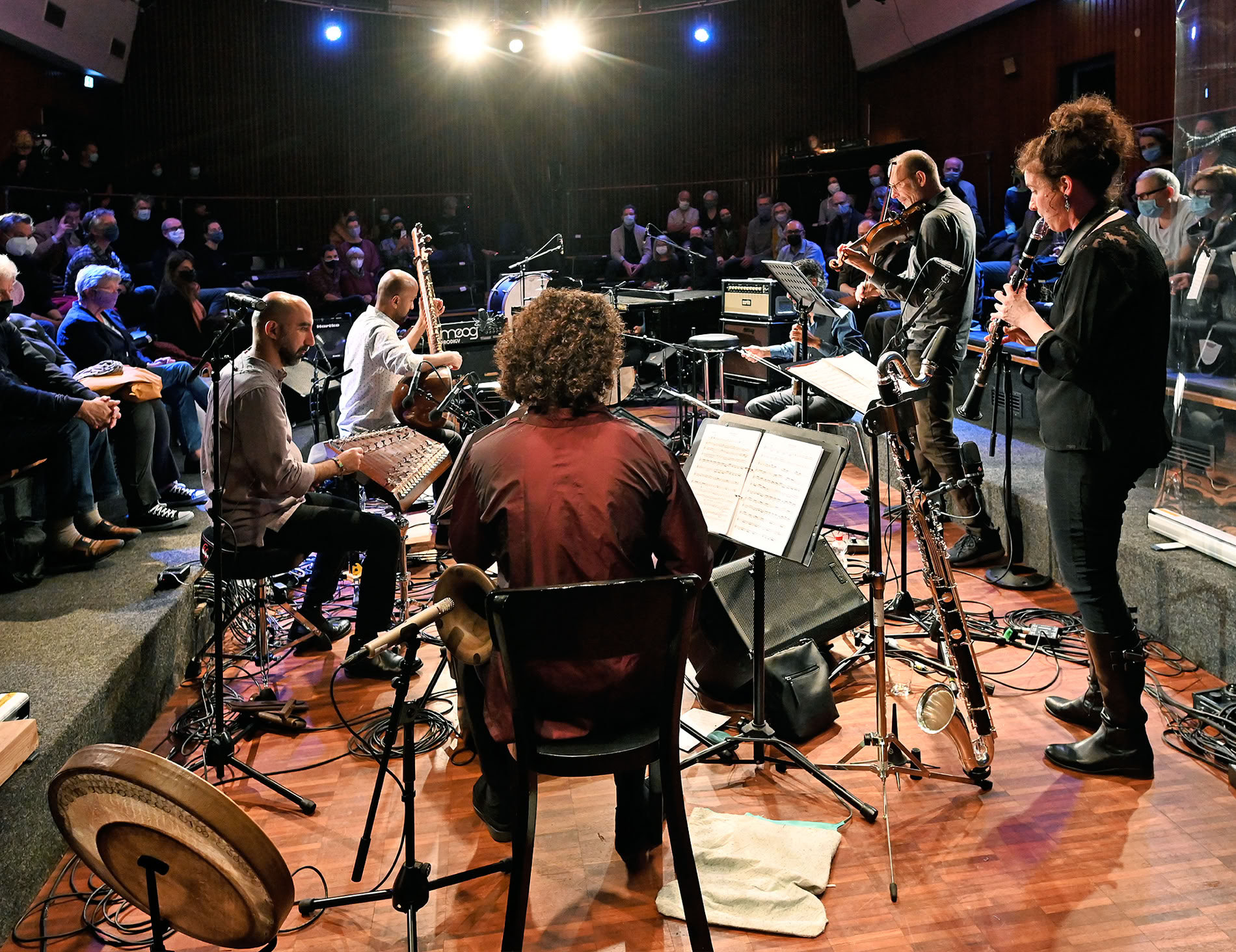 In ihren Eigenkompositionen und Improvisationen entfalten die sechs Musiker:innen einen polyästhetischen Stil, der den gesamten eurasischen Raum einbezieht.